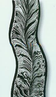 The image of pamor Sekar Tebu is indeed like a pluck of sugar sheer. Pamor Sekar Tebu is nearly like pamor Blarak Ngirid. The difference is that the pamor lines are more far away from the edge of the blade. Pamor Sekar Tebu is also like pamor Sekar Glagah. The pamor lines of pamor Sekar Tebu are more fine than the lines of pamor Blarak Ngirid or Sekar Glagah.
