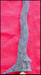 The image of pamor Klabang Sajuto looks like a millipede. Pamor Klabang Sajuto is also simular to pamor Naga Rangsang. The difference is that the pamor lines of pamor Klabang Sajuto are broken at the ountermost end.