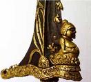 Kala Cakra, Kinatah ist eine Hinzufügung auf der Klinge eines Keris oder Tombak aus Goldauflage. |
