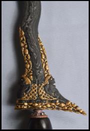 Kudung ist eine Pamor, die man nur an der Klingenspitze findet. Sie ähnelt der Pamor Talak nur ist sie umgekehrt ausgerichtet. |