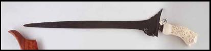 Lar Bido ist die Dapur eines Pedang Java. Die Form ähnelt der Dapur Lar Bango. Der Unterschied besteht darin, dass bei der Dapur Lar Bido die Klinge größer ist, breiter aber dünner. Diese Form ist nicht so beliebt, da die Scheide viel zu dick ist und nicht geschmückt ist. |