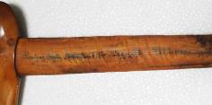 Landeyan heißt Griff. In der Keriswelt spricht man bei einem Tombak von Landeyan. Früher, etwa bis 1920, wurden auch Griffe von Keris so bezeichnet. Die Landeyan eines Tombak auf Java sind normalerweise aus Holz gefertigt und gerade. Der Durchmesser beträgt etwa 4 cm. Die Maße gehen von nur 45 cm bis zu 3 Meter, auch Landeyan Blandaran genannt. |