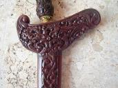 Mahagoni ist eine Holzsorte, die zum Bau einer Warangka auf Java, Madura, Riau und in Brunei verwendet wird Es wird aber nicht oft verwendet, da es sehr hart ist und die Klinge des Keris beschädigen könnte. Es wird aber oft für Ploncon, d. h. Kerisständer zur Aufbewahrung des Keris verwendet. |