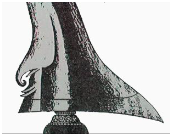 Murma Malela ist die Dapur eines Keris mit 7 Luk. Die Formen der Luk sind besonders und daher ist diese Dapur leicht zu erkennen. Die Windungen werden immer kürzer. Dieses Dapur hat Kembang Kacang, zwei Lambe Gajah. Keris mit dieser Dapur gehören zu den seltenen Keris. Diese Art ist schwierig zu machen. |
