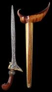 Putut ist eine Dapur eines geraden Keris. Es gibt diese Dapur mit normaler und kurzer Klinge. Die Gandik wird durch einen sitzenden Menschen gebildet. Es gibt außer Ri Pandan oder Tinggil keine anderen Ricikan. Putut heißt Gelehrter aber oft sieht das Bild eher wie ein Affe aus. In einigen Gebieten von Java wird diese Dapur auch Dapur Umyang genannt, aber Umyang ist kein Name einer Dapur sondern eines Empu der z. Zt. des Königreichs Pajang lebte. |