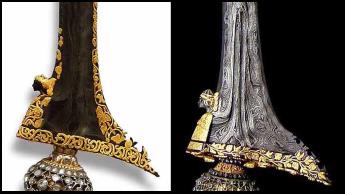 Puteri Kinurung ist ein Motiv einer Pamor, die wie ein großes Blatt mit einigen kleinen Inseln in der Mitte aussieht. Sie kann irgendwo auf der Klinge auftreten, meistens findet man sie aber an der Sor-Soran. Sie besitzt die magische Kraft den extravaganten und verschwenderischen Charakter des Besitzers zu verringern. Daher ist diese Pamor für Kassierer besonders geeignet. Sie gehört zu den Pamor Tiban. Sie ist zwischen Wos Wutah und Pulo Tirta anzusetzen. |