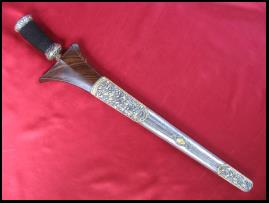 Sala Ketingal ist die Dapur eines Pedang, das zur den Pedang Suduk gehört. Die Länge des Pedang beträgt etwa 82 bis 95 cm. Der Rücken der Klinge ist auf dem geraden Teil stumpf zur Spitze hin aber scharf. Dieses Pedang ist nicht schwer und wurde oft von Soldaten in der linken Hand neben dem normalen Schwert in der rechten Hand getragen. |