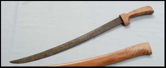 Sokayana ist die Dapur eines Pedang, das zu den Pedang Suduk gehört. Dieses Pedang ist zwischen 90 und 110 cm lang. Die Klinge ist gerundet mit der breitesten Breite etwa zwei Drittel vom Heft aus. Der vordere Teil der Klinge ist scharf. Der Rücken ist gerade. |