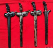 Wedung ist eine traditionelle javanische Waffe. Sie wurde früher von den Bediensteten des Keraton zur Vervollständigung der Kleidung getragen. Im Gegensatz zum Keris, der nur von Männern getragen wird, kann das Wedung sowohl von Männern als auch Frauen getragen werden. |
