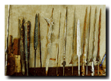 Die Warangka werden meist in einem Dorf gefertigt, wo sich die Inhaber auf die Herstellung spezialisiert haben. Die Öffnung weist nur ein kleines angebohrtes Loch auf, das erst später wenn die Klinge vorhanden ist passend erweitert wird, damit die Klinge Platz findet. |