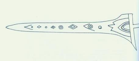 This pamor motif is made up of many round and square designs that can be found on the entire length of the blade. At the Sogokan you find triangles and it looks like a house. According to tradition this pamor is a property of an Egyptian prince. The pamor has great power and brings great profit and influence. The owner of this pamor motif is loved by all. Working in a service of the Sultan, he will soon get a higher position. He must be patient and steadfast. If he goes abroad he is wealthy. You should not take this pamor motif if you want to do wrong things.