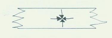 Das Bild von Pamor Nodjomet ähnelt vier Pfeilen, die auf den gleichen Punkt gerichtet sind. Pamor Nodjomet kann überall auf der Klinge zwischen anderen Pamormotiven auftreten.