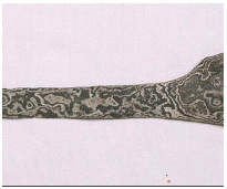 Jung Isi Dunya is a pamor and belongs to pamor Mumiah. This pamor can occur on many parts of the blade, at the Sor-Soran, in the middle or at the top. The pamor looks like small balls which are surrounded on the outside by a boundary. One finds this pamor to complement Wos Wutah or Ngulit Semangka, but also alone. The magical power helps to make wealth and fortune.