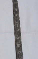 The image of this pamor motif seems to be a row of strangely flowers which are scattered in the middle on the whole length of the blade. Each is about 1.5 to 2 cm away from the other pamor flowers. The diameter of the flowers is about 1 cm. The flower has normally 6 or 7 rings.