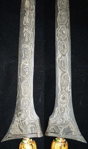Das Bild von Pamor Bendo Sagodo hat die Form von gruppierten Pamor Klumpen über die gesamte Länge der Klinge. Die Pamor Klumpen sind häufig nicht rund, aber oval oder manchmal fast quadratisch. Pamor Bendo Sagodo gefällt vielen Leuten.