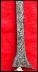 The image of this pamor motif looks like a branch mit a row of coffee plants. In the middle of the blade along the whole length of the blade you find a pamor groove with different groups of 2 to 4 small balls on the side. Pamor Sekar Kopi is a strange pamor motif.